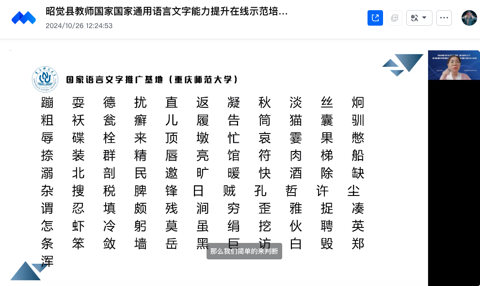 为深入贯彻落实党的二十大和二十届二中、三中全会精神以及全国语言文字会议精神,发挥国家语言文字推广基地示范带动辐射作用,铸牢中华民族共同体意识,助力乡村振兴,国家语言文字推广基地(51u娱乐)携手四川省昭觉县教育和体育科学技术局共同举办的教师国家通用语言文字能力提升培训班于2024年10月26日结束,为期五周,以大班讲座与小班指导相结合的方式开展,共计完成13次线上教学培训与15次小组实践训练活动。