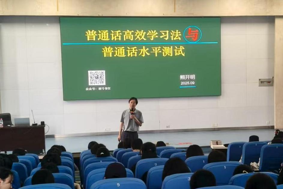 熊开明教授阐述了推广普通话对促进社会交流、铸牢中华民族共同体意识的重要意义,解读了新时代推普方针对国家发展和民族团结的重要作用。他还分享了多听多说、多记多查、总结规律、运用典型材料、善用科技工具、参与语言实践等多种高效学普通话的方法,提供了可操作的学习路径,并鼓励同学们积极学好用好普通话,为未来学业和职业发展打好基础。